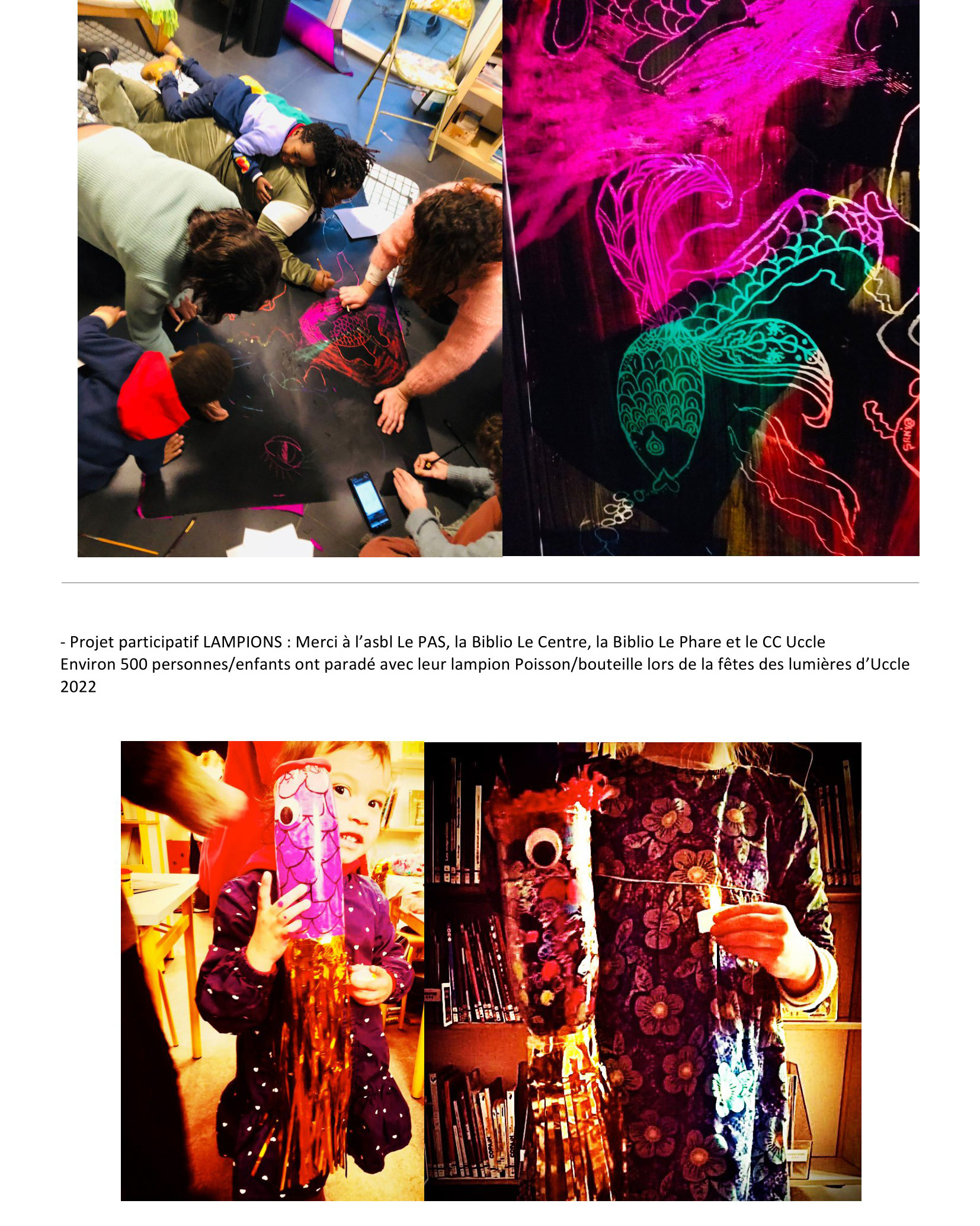 Notre proposition était d’inviter les citoyens ucclois à découvrir les oeuvres à la fois riches et accessibles de certains designers (Ray et Charles Eames, Nathan Carter, Calder...) qui ont travaillé sur le thème du mobile et les embarquer dans la poèsie du mouvement via la réalisation d’une INSTALLATION collective s’inspirant de cet esprit et amenant chacun.e à y exprimer sa créativité.